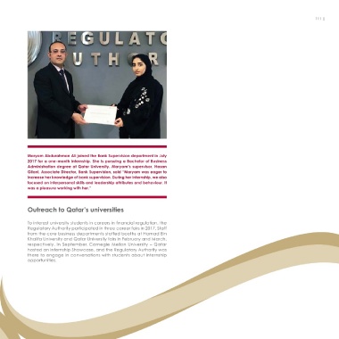 from the QFC Authority in early July 2017 for a six-month place- Fatima Mohammed Al-Hemaidi, a student of English literature and Maryam Abdurahman Ali joined the Bank Supervision department in July