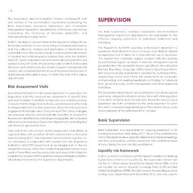 all actively monitored by the Supervision departments. Supervision’s reforms on liquidity risk, the Supervision division ran The department is in the fourth year of the implementation of new