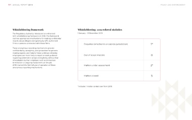 Whistleblowing framework Whistleblowing: 2019 referral statistics